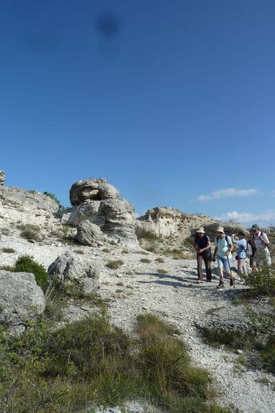 Par les collines couvertes d'oliviers, de champs de lavande et de bories, nous accèderons à un lieu très étrange, couvert de grandes roches en forme de champignons, ou de têtes (c'est le sens de mourre en provençal), qui constitue une véritable curiosité géologique. De ce site, nous aurons également une vue exceptionnelle sur la Haute Provence.Temps de marche : 3 h. Dénivelée : 250 m. Cotation randonnée (1-facile/2-moyen/3-élevé)Physique (intensité de l’effort) : 1Technique (état du parcours) : 1Endurance (longueur de l’effort) : 1Chaussures de randonnée à semelles bien dessinées obligatoires.RDV devant l'office de tourisme de Gréoux les Bains.