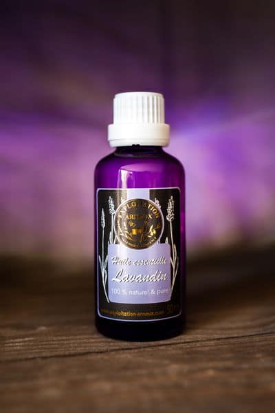 Huile essentielle de lavande et de lavandin. Huile d'olive. Miel de lavande. Plants de lavande et de lavandin.