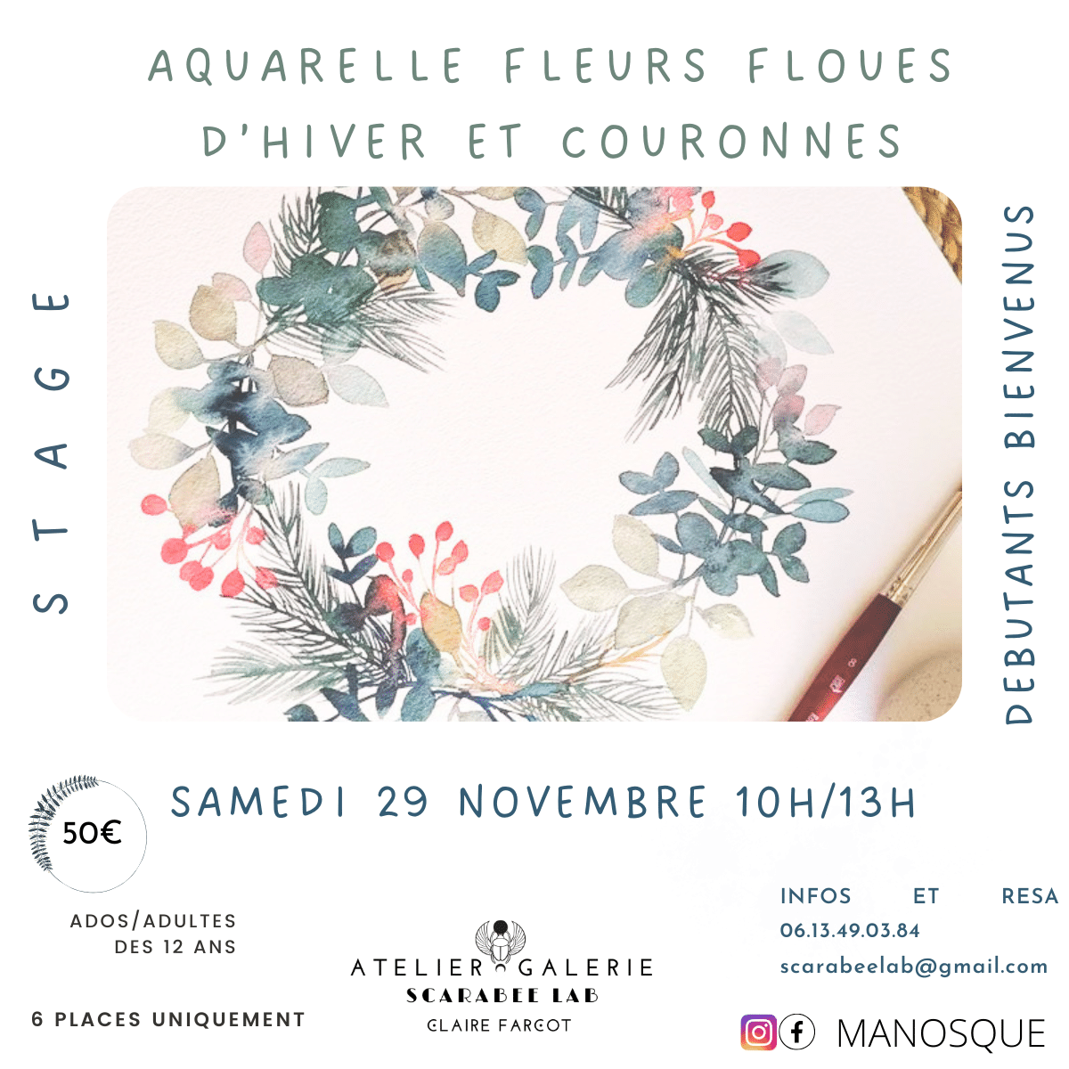 Stage d'aquarelle accessible ! Fleurs floues et/ou couronnes d'hiver