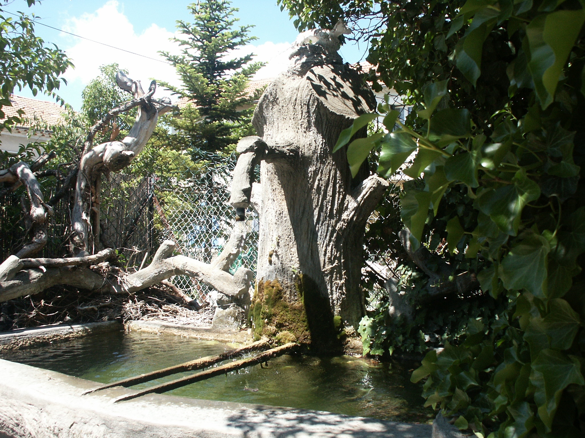 La parcelle de terrain appartenait à M. Eugène Banon, entrepreneur de maçonnerie. Elle devait assurer la fonction de puisage et d’abreuvoir.C'est une fontaine de forme rectangulaire. Sa colonne cylindrique reproduit un tronc d’arbre et des branches sectionnés. Le canon est construit en béton.La décoration est un enchevêtrement de tronc et de branches d’arbres. Le bois, symbole pour faire la réplique des fontaines de montagne qui étaient construites en bois de mélèze. Le style est nouveau par rapport au construction classique.